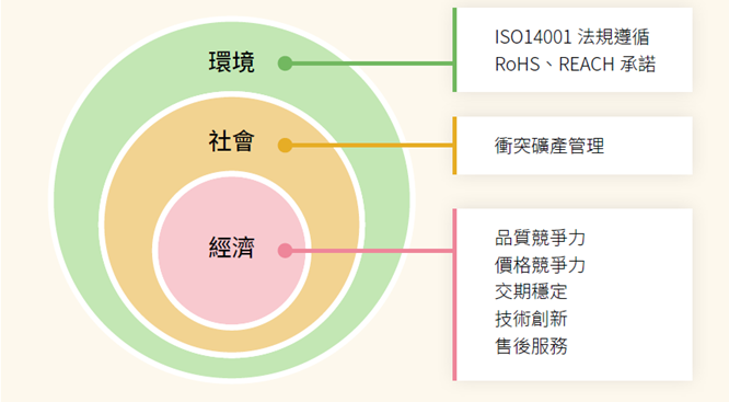 經營理念。針對供應商之經濟、社會、環境面有以下要求: